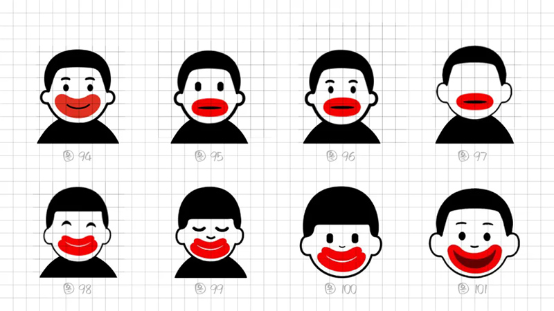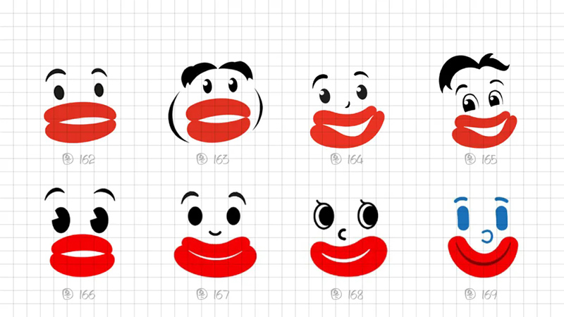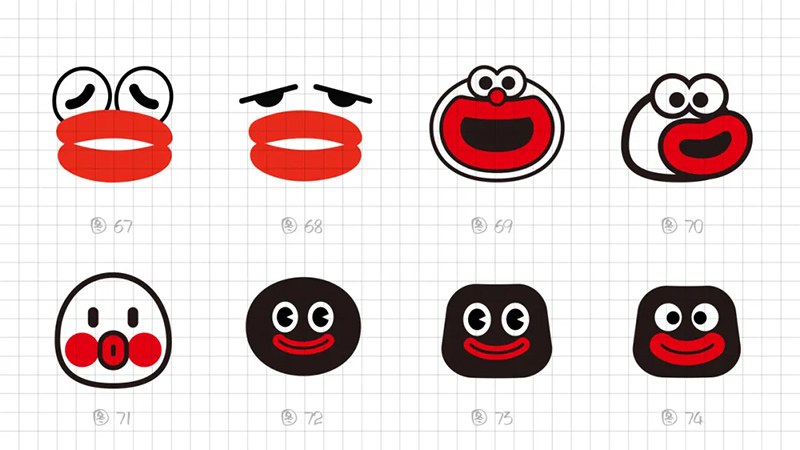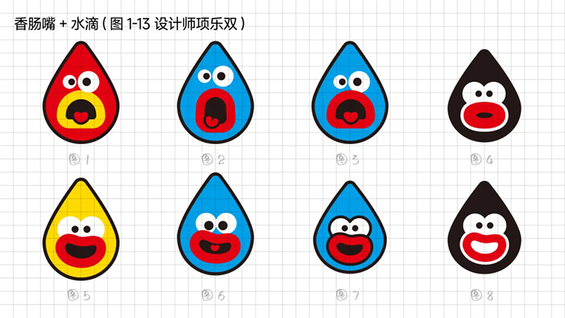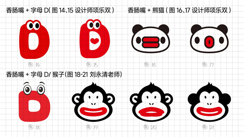 一開(kāi)始使用最常規(guī)的多符號(hào)相加的符號(hào)創(chuàng)作套路,即“香腸嘴+熊貓”“香腸嘴+水滴”“香腸嘴+猴子”“香腸嘴+字母D”。