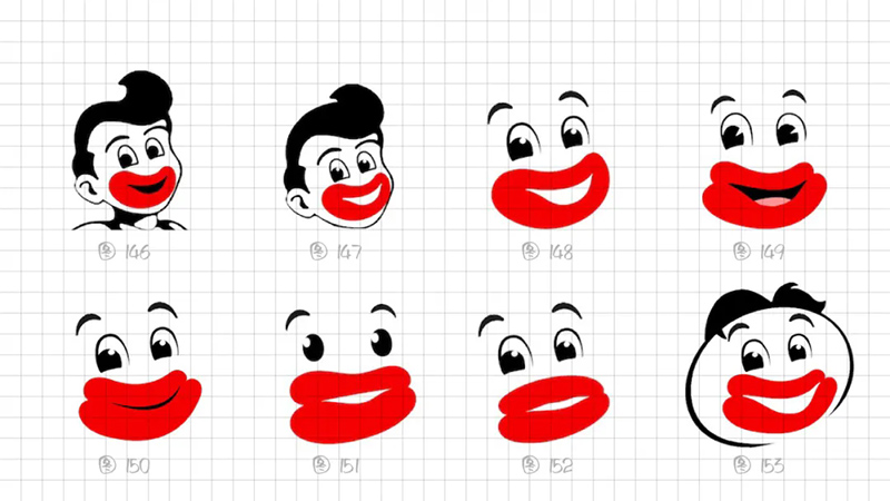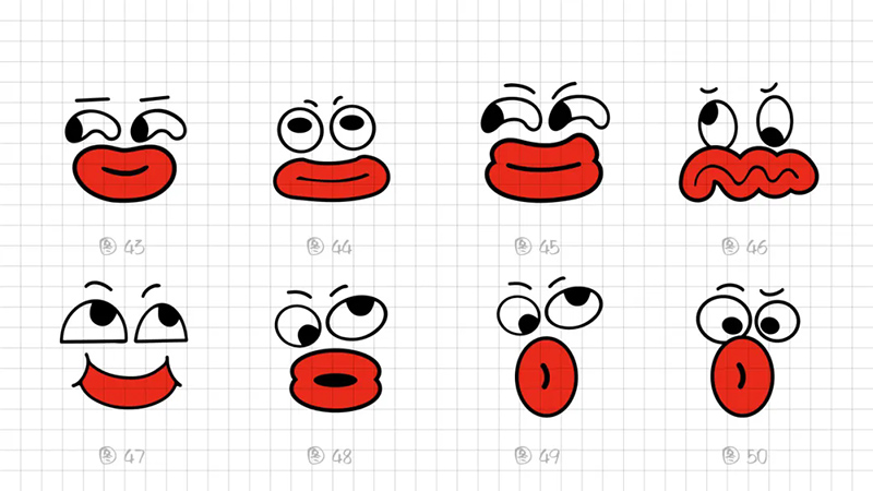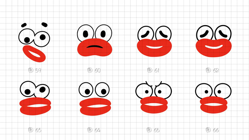 2)表情夸張:從嘴唇的形態(tài)探索,到形態(tài)上微笑的彎曲弧度大小、到燙到呼氣的表情、到燙到吐舌頭變化調(diào)整的嘗試,想用五官輔助表達(dá)燙的瞬間,去抓驚訝、小心翼翼喝熱水或喝熱水舒服的表情瞬間。