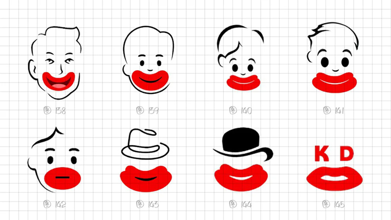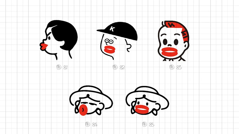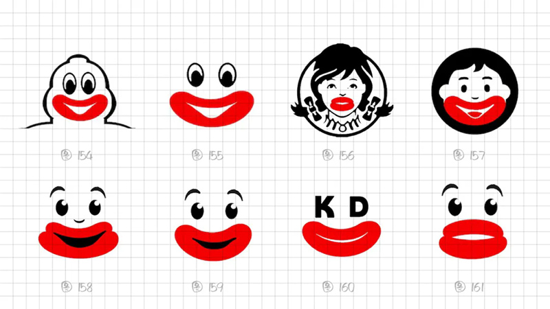 從識(shí)別角度出發(fā),我們最終鎖定還是采用2片式結(jié)構(gòu)、3個(gè)幾何橢圓、絕對(duì)對(duì)稱(chēng)的圖形能高度概括燙嘴的表現(xiàn)特點(diǎn)。在細(xì)節(jié)上調(diào)整圖形,下唇更厚、下唇更寬。